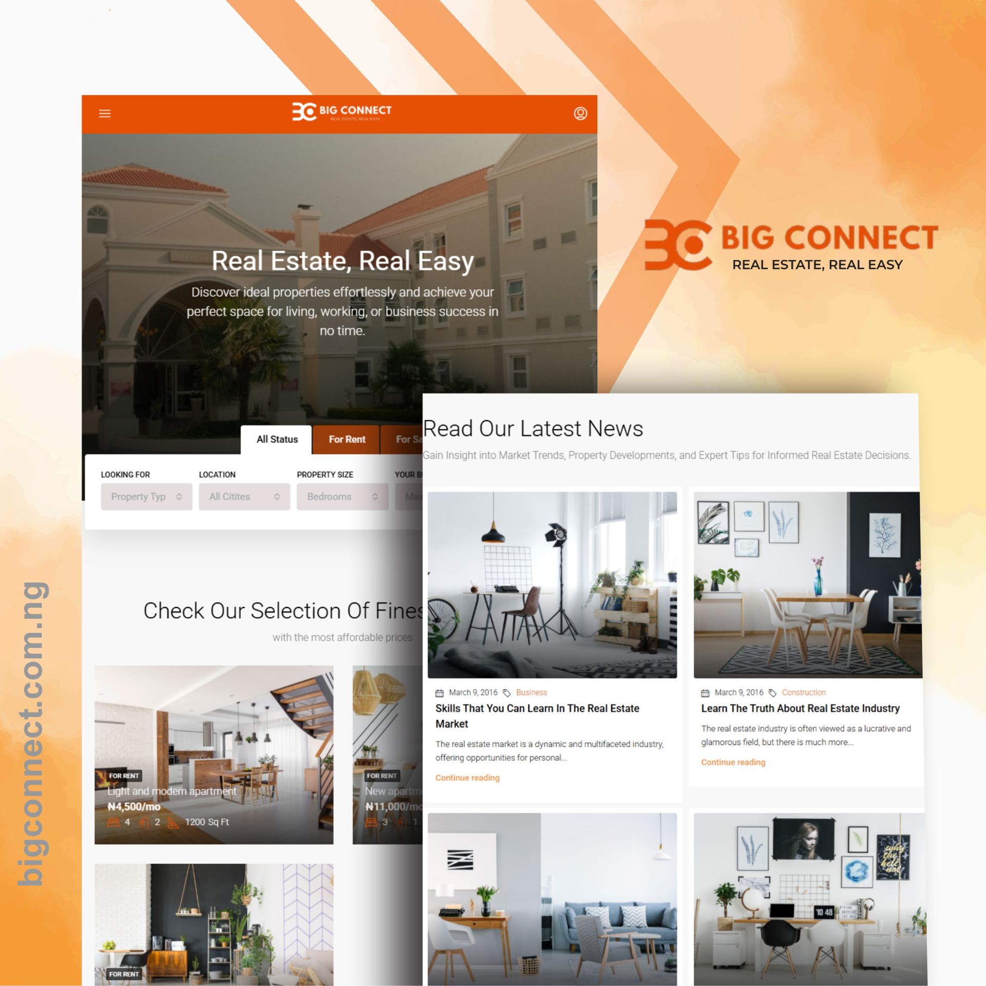 Big Connect is a dynamic real estate platform designed to seamlessly connect property seekers with their ideal properties. Whether you're searching for residential, commercial, or investment opportunities, Big Connect simplifies the journey with user-friendly features and a clean, responsive interface. The platform supports verified listings, clear visuals, and direct inquiry options, ensuring both property buyers and sellers can communicate efficiently. Built with modern web technologies, it’s scalable, fast, and optimized for mobile. Big Connect also integrates smart filters, location-based search, and essential property details to help users make informed decisions. It’s more than just listings — it’s a digital bridge between people and property opportunities. The platform is built to scale with Nigeria’s growing real estate demand.
